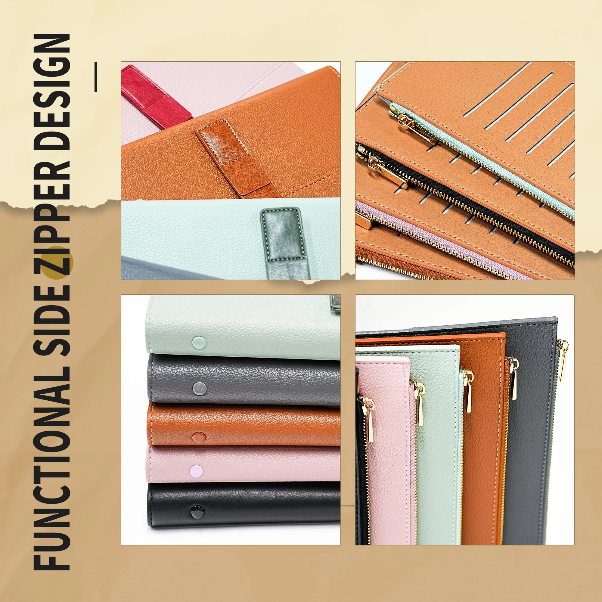 Journal A6 Luxury PU Leather Customized Logo Planner Zipper Pocket Wholesale Loose Leaf Diary Ring Binder Business Gift Notebook