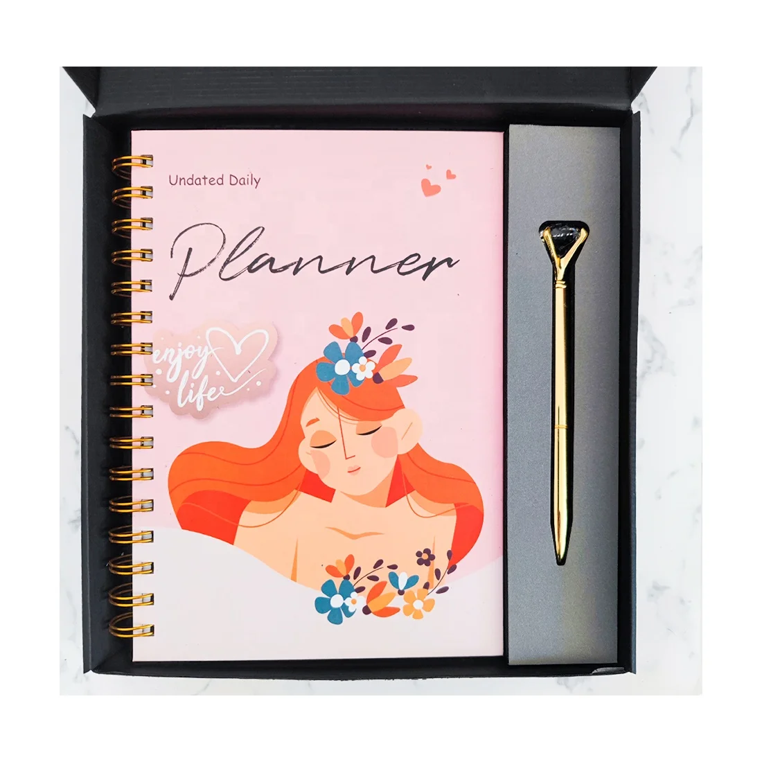 Custom Notebooks A5 Paper Cover Gift Promotion Low MOQ Pink Hardcover Spiral Elastic Band Undated Daily Weekly Meeting Planners