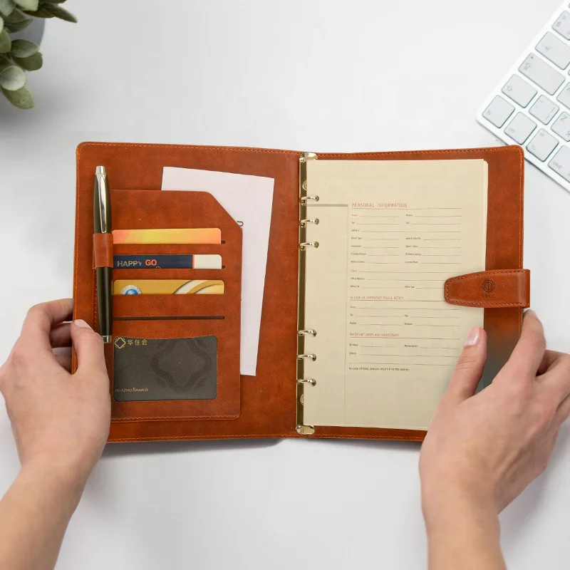 Factory Custom Zipper Pu Leather Organizer 2026 Planner Notebook A5 Pu Binder Office Notebook