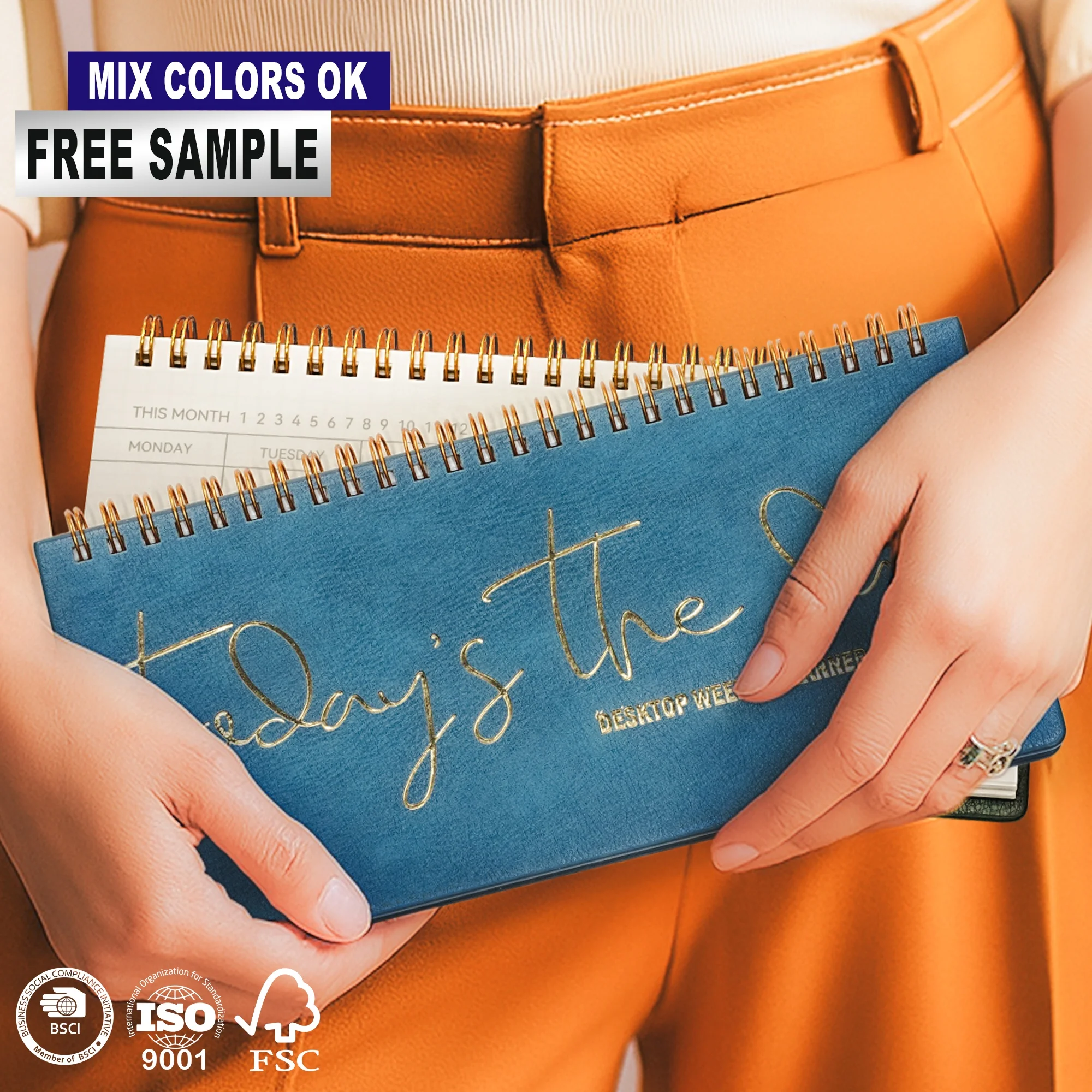 Desk Calendar Personalized Flip Stand Promotional Business Gifts Vegan Leather Spiral Binding for Office Planners