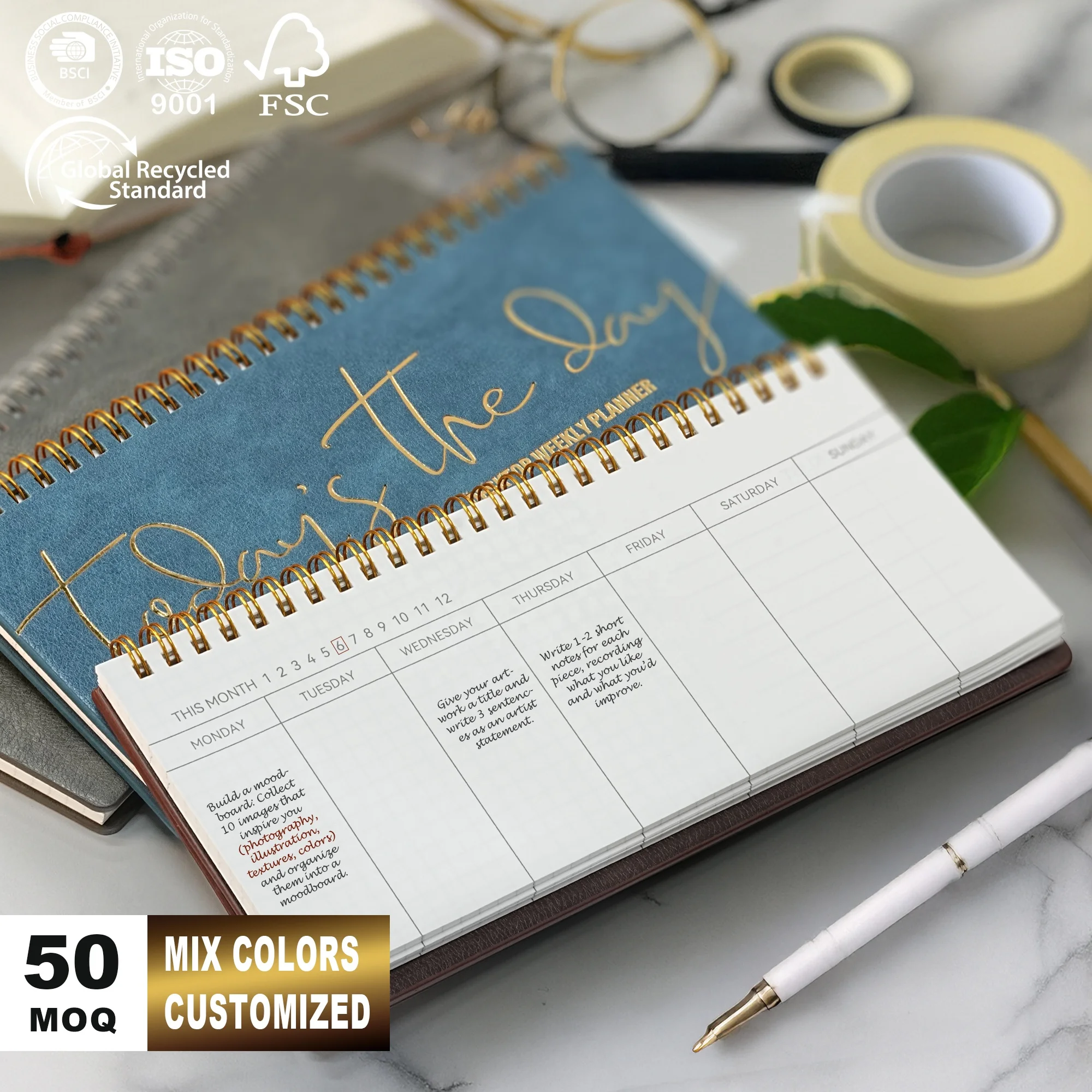 Premium Gifts Low MOQ Wire-O Custom Logo PU Leather Weekly Planner OEM Printed Line Offset Paper Schedule Business Desk Schedule