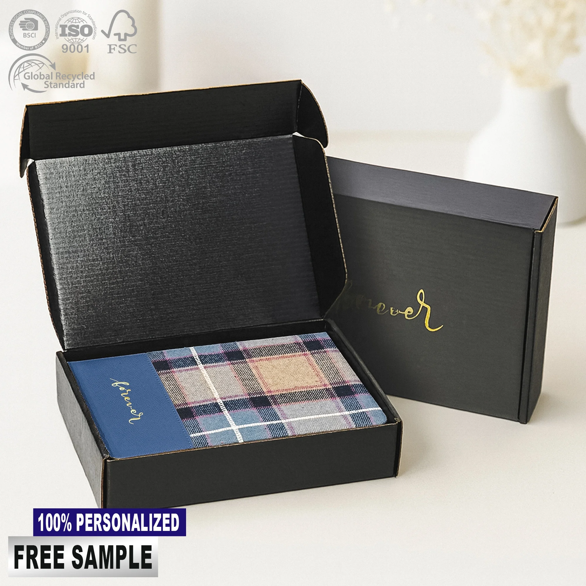 Luxury Gift Box Available A5 A6 Custom Logo Plaid Fabric PU Leather Cover Tartan Pattern Corporate Branding Bulk Order Notebook