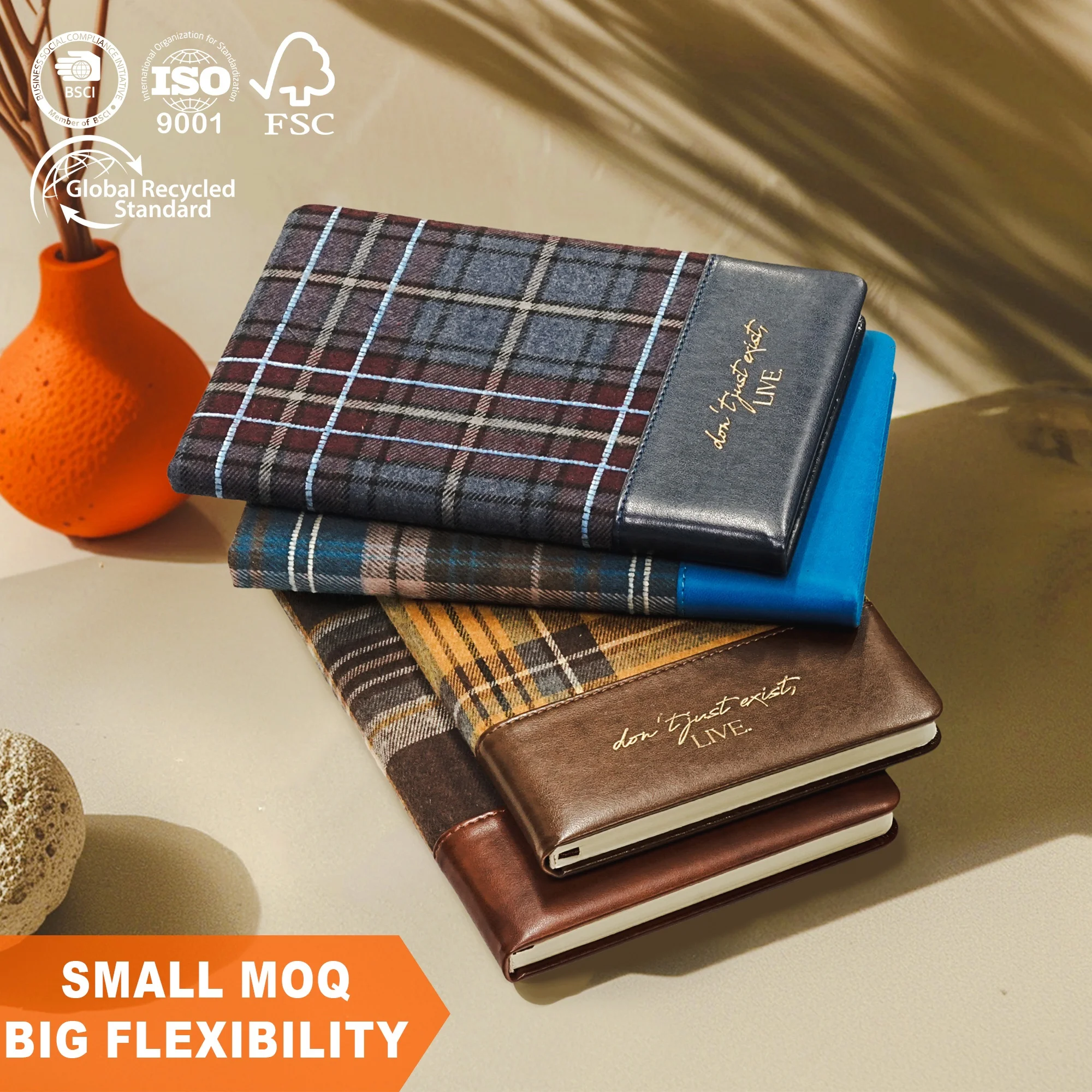 Manufacturer Custom Printed Notebook Plaid Fabric PU Leather Patchwork A5 2026 Planner Business Journal Diary Leather Notebook