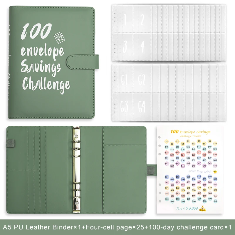 100 Envelope Savings Challenge Budget Planner Notebook Six Colors A5 Loose-lead Daily Planner Notebook