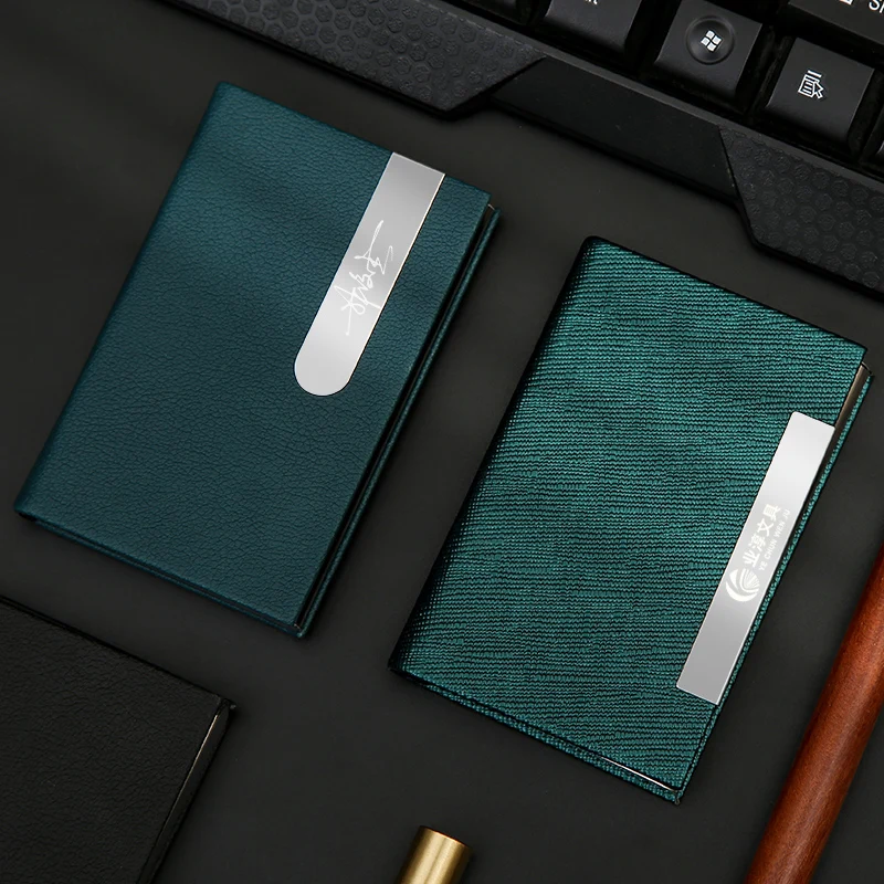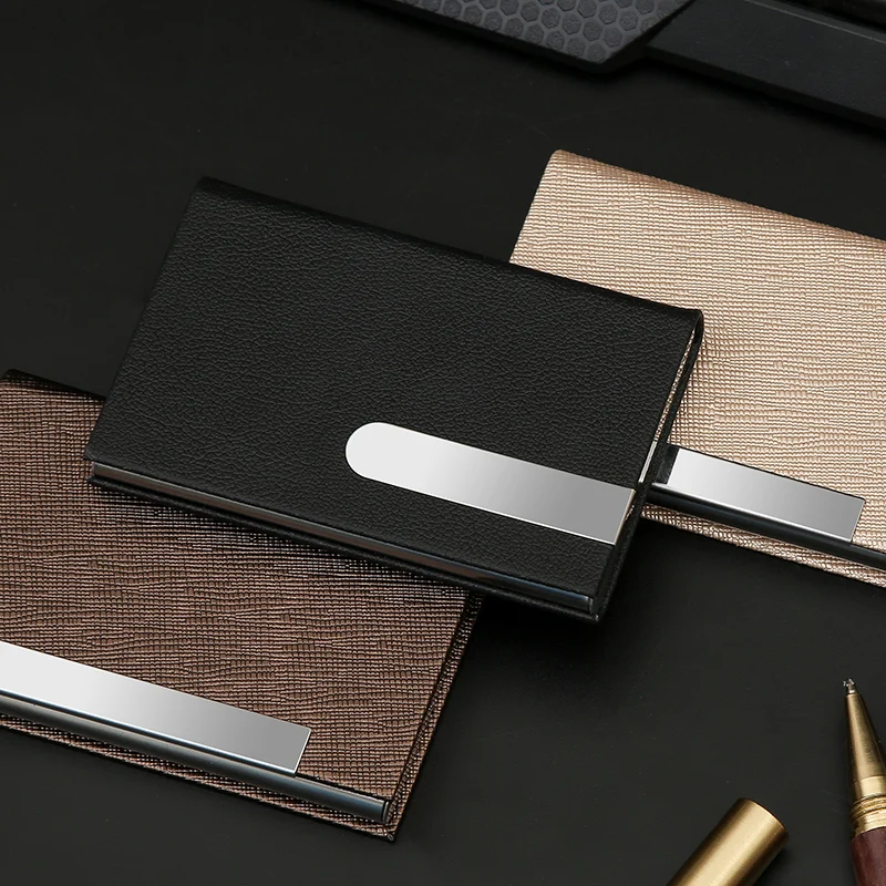 Custom Men Women PU Leather With Metal Business Card Holder Fashion Business Promotion Gift Card Holder ID Card Holder