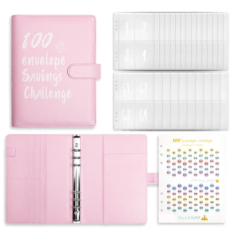 100 Envelope Money Saving Challenge 100 Day Money Binder PU Cover A5 Budget Binder With Envelopes Sticker