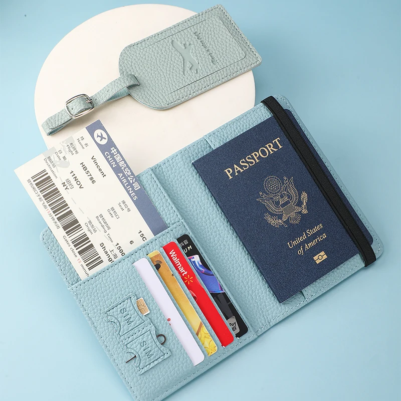 Customize Travel Passport Holder Set Multifunction PU Leather Personalized Passport Holder