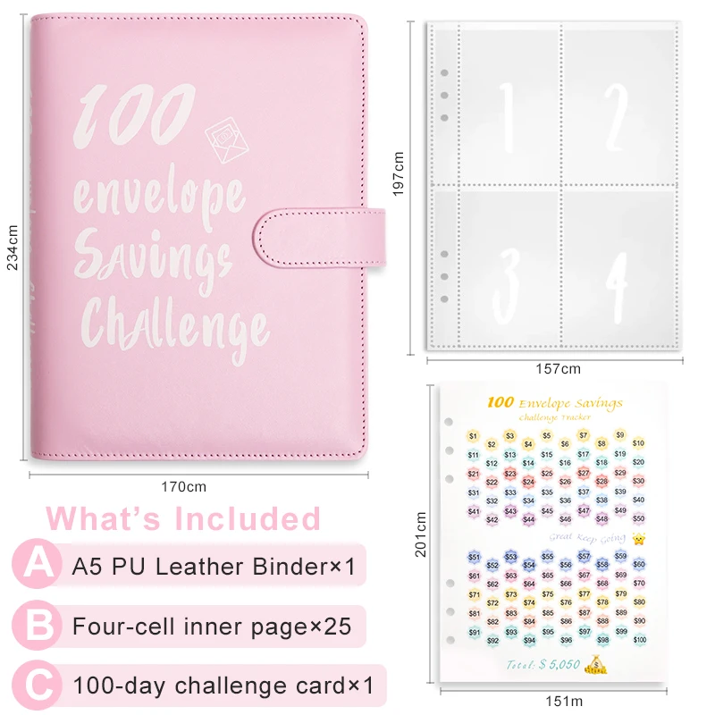 Custom Pu Leather Notebook 100 Envelopes Money Saving Challenge Budget Binders Hardcover Books