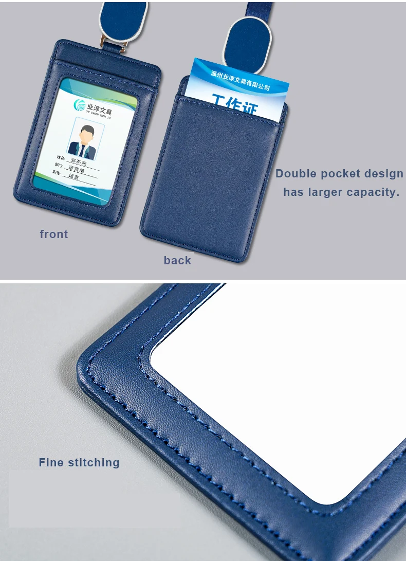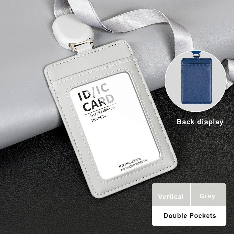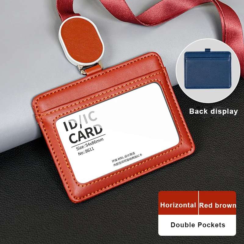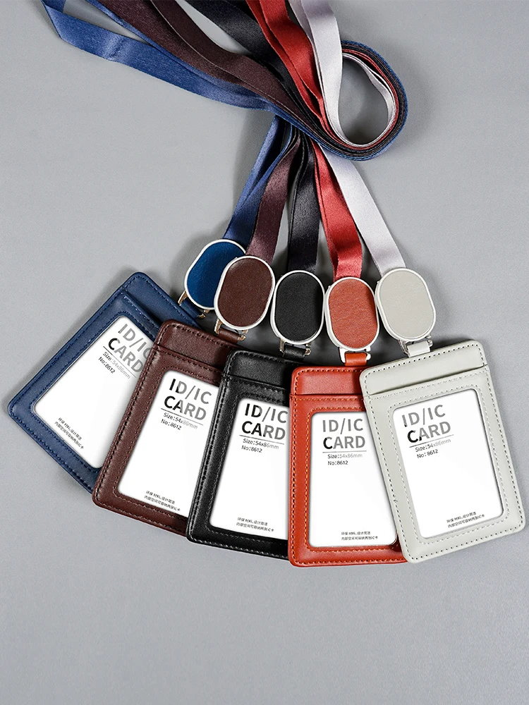 Id Card Holder with Neck Strap PU Card Holder Pocket Design Retractable Ropes High-End Card Holder