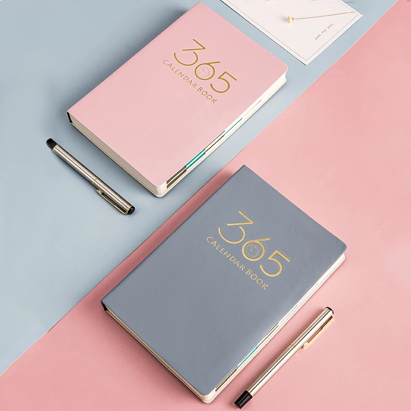2026 Custom Logo Printed PU Leather Notebook Planner Journal Diary 365 Days Access Office Promotional