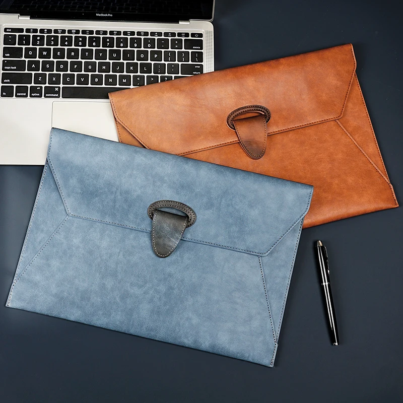 A4 Business File Bag Customized Leather File Bag with Buckle Thickened Waterproof Bag