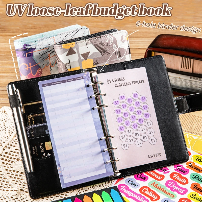 2026 New Budget Binder Colorful Notepad A6 Stripe Planner PU Leather Money Saving Challenge Envelops