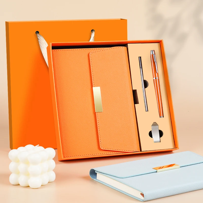 Gift Box with Pen and Ustick Hardcover Notebook with Magnetic Buckle PU Leather Notebook