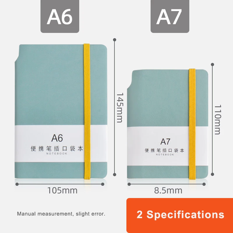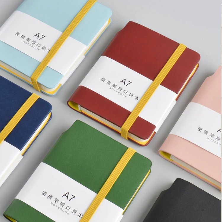 Colorful Cover Small Lined Journal Note Book A7 PU Leather Portable Pocket Students Notebook with Pen Holder