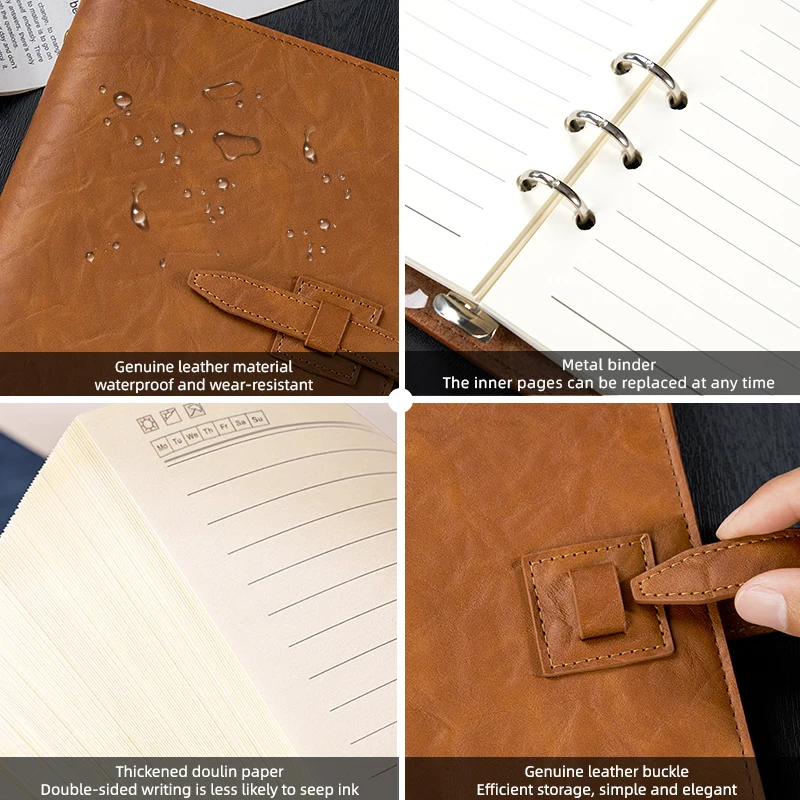 Custom Retail 100 Sheet 200 Pages Vintage Journal Hardcover Cowhide Loose Leaf Notebook A5 Genuine Leather Case for Notebook