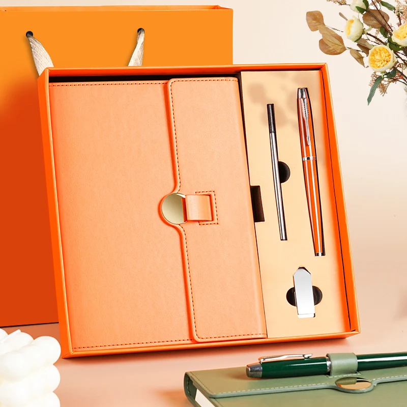 Customizable Exquisite Notepad Set Business Gift Leather A5 Hardcover Planner Book with Pen