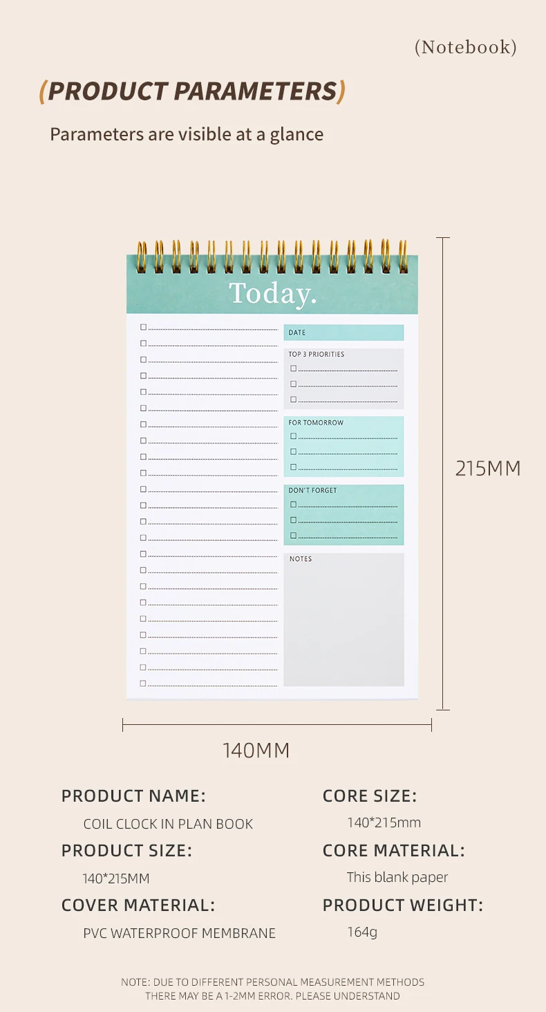 High Color A5 Spiral Bound Daily Plan Notebook Cute Portable Cross-Border English Journal for Learning Notepad