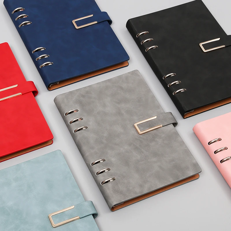 Low MOQ Wholesale U-shaped Buckle A4 B5 A5 A6 PU Loose-leaf Notebook with Pen Holder