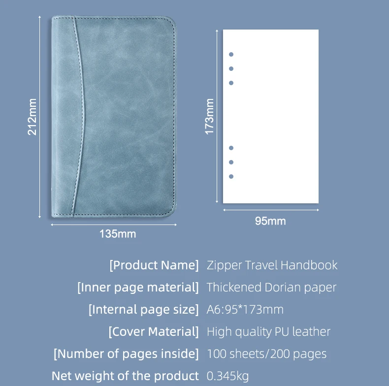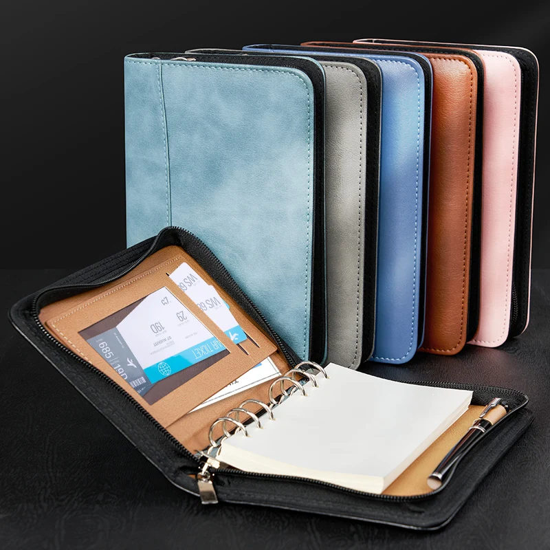 Blank Page Notebook Zipper Bag Note Book Business Manager Folder Handbook Journal Binder Spiral Diary Travel Handbook Notebook
