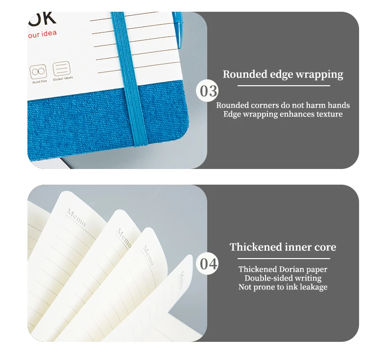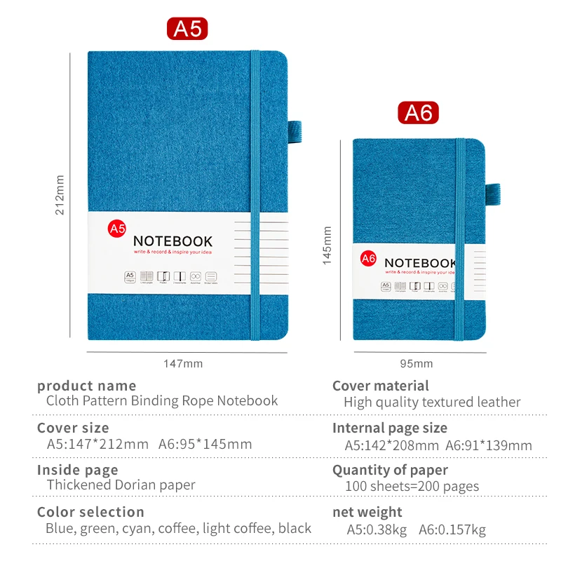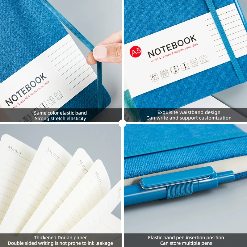 Low MOQ Wholesale Promotional Elastic Strap Notebook 100 Sheets 200 Pages A5 Hardcover Fabric Notebook for Students