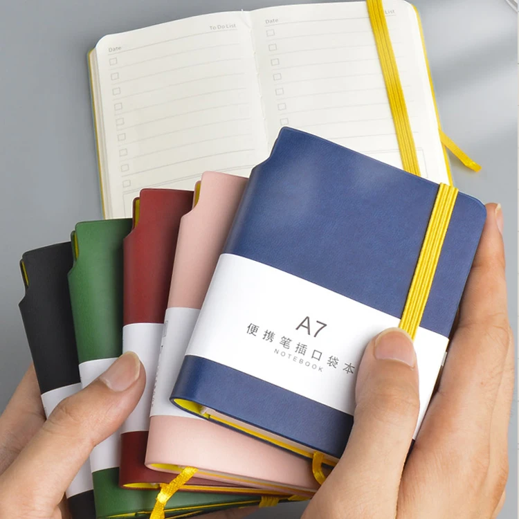 OEM ODM Custom Mini Students Note Book A7 PU Leather Cover Pocket Notebook with Pen Holder