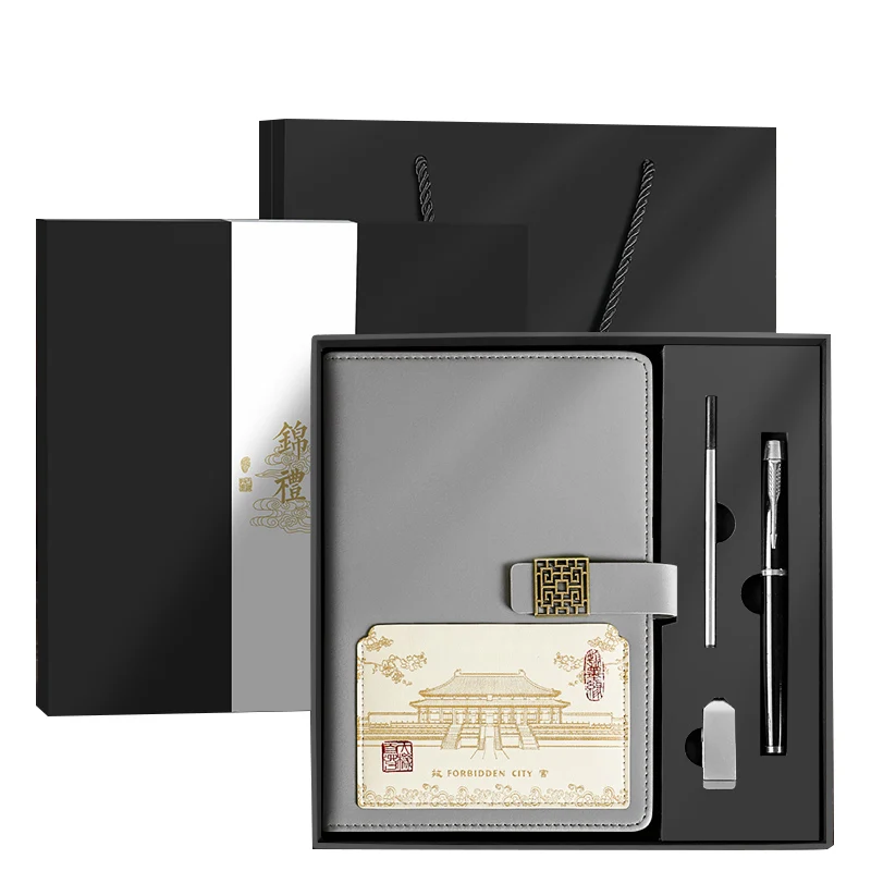 Gift Box Set Can Be Printed Logo Business Creative Chinese Style A5 Hardcover Leather Notebook