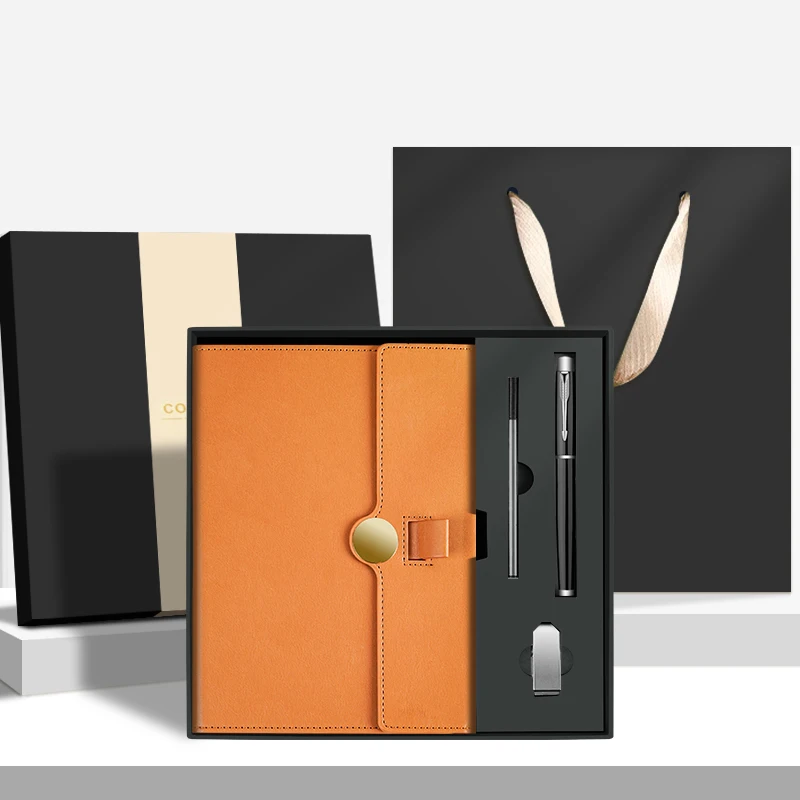 Gift Box with Pen and U Disk Low Price PU Leather Notebook Logo and Cover Accepted Customized