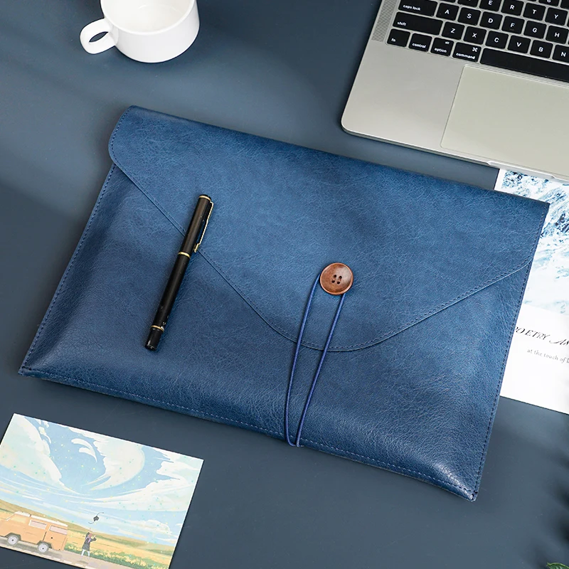 Custom Men Woman PU Leather Multifunction Office Documents Bags A4 Paper File Pouch Envelope Bag Conference