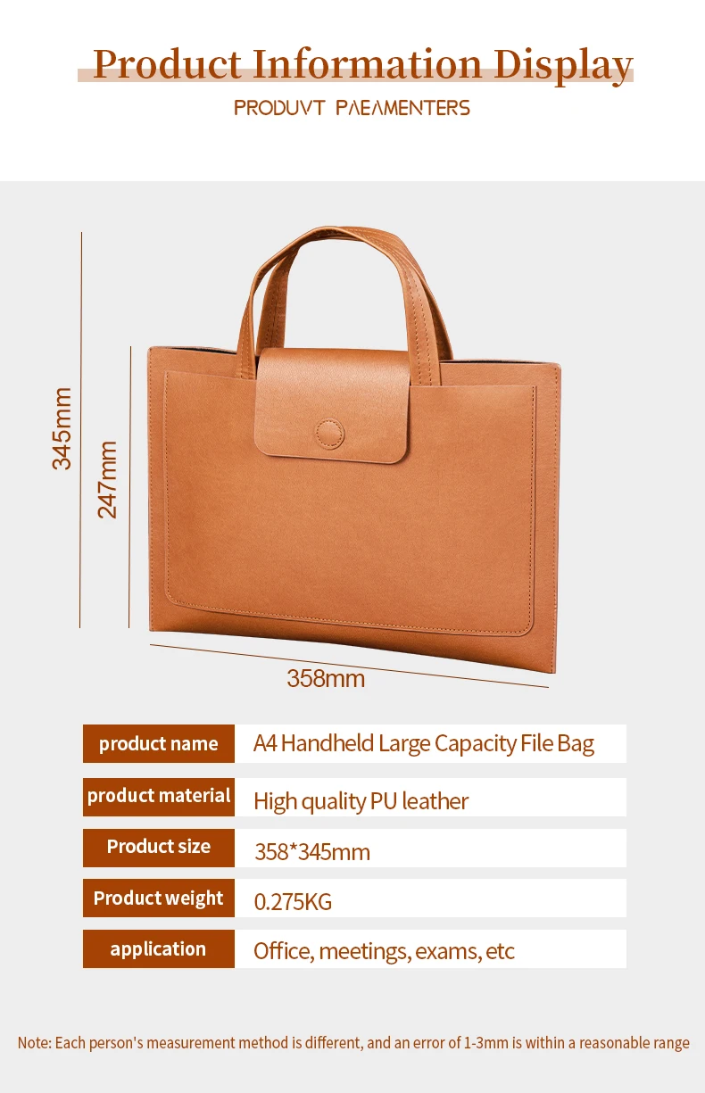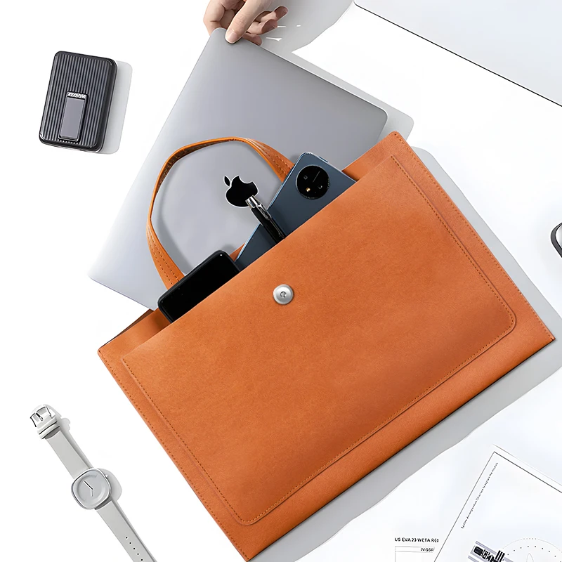 Support Customized Company Logo Branding Laptop Folder Bag Waterproof PU Leather Portable Document Bag