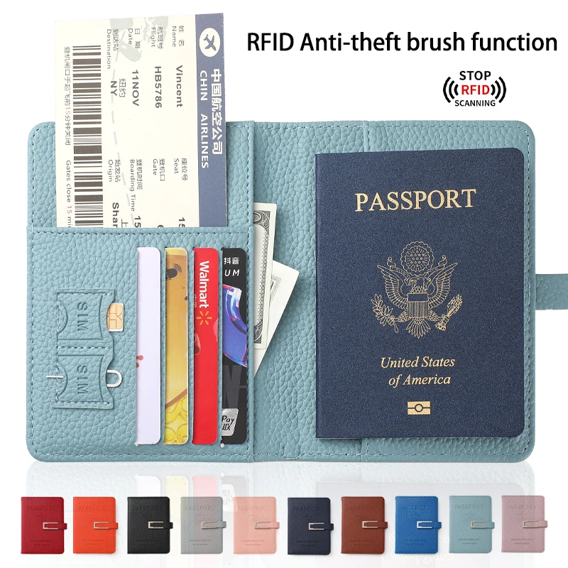 Passport Holder Cover Wallet Travel Essentials RFID Blocking Leather Card Case Passport Clip for Women Men