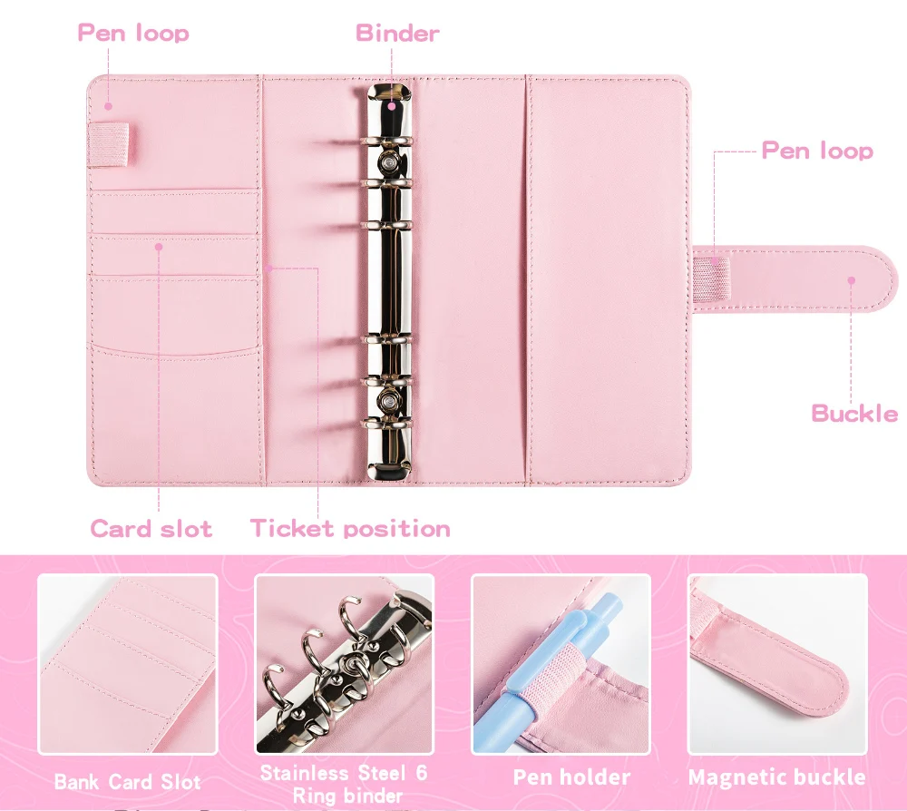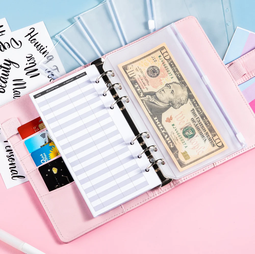 A6 PU Leather Money Organizer for Cash Budget Binder Planner for Daily Saving