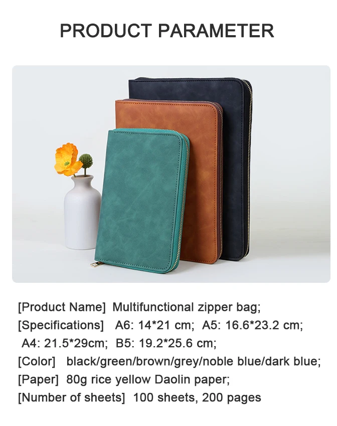 Wholesale PU Leather Cover A6 A5 A4 B5 Zipper Notebook Multi-Functional Creative Loose-Leaf Business Notepad With Card Slot