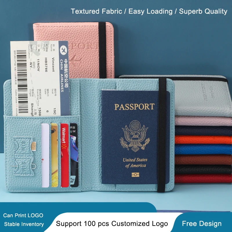 Custom PU Leather Passport Mobile and Credit Card Holder Cover Hot Sale Gift with Notepad