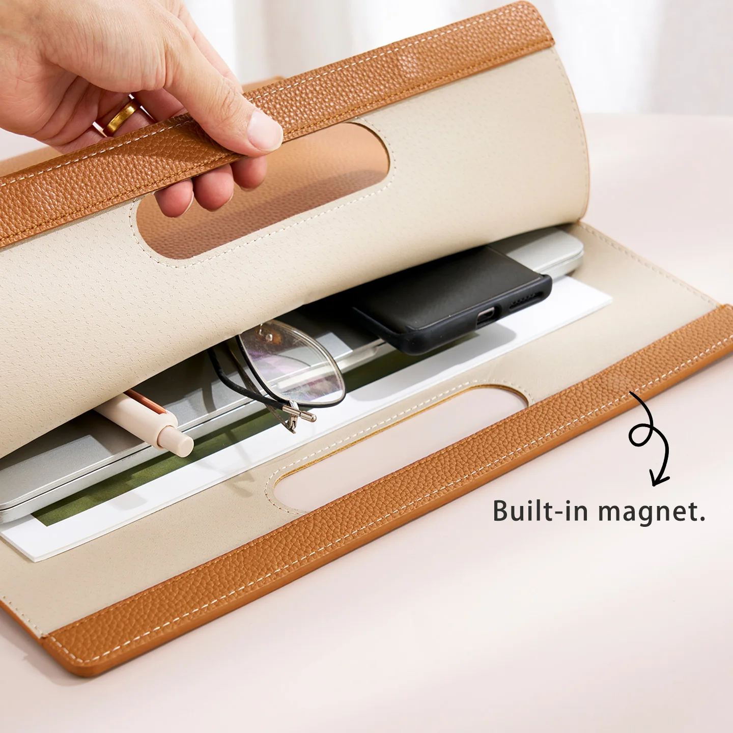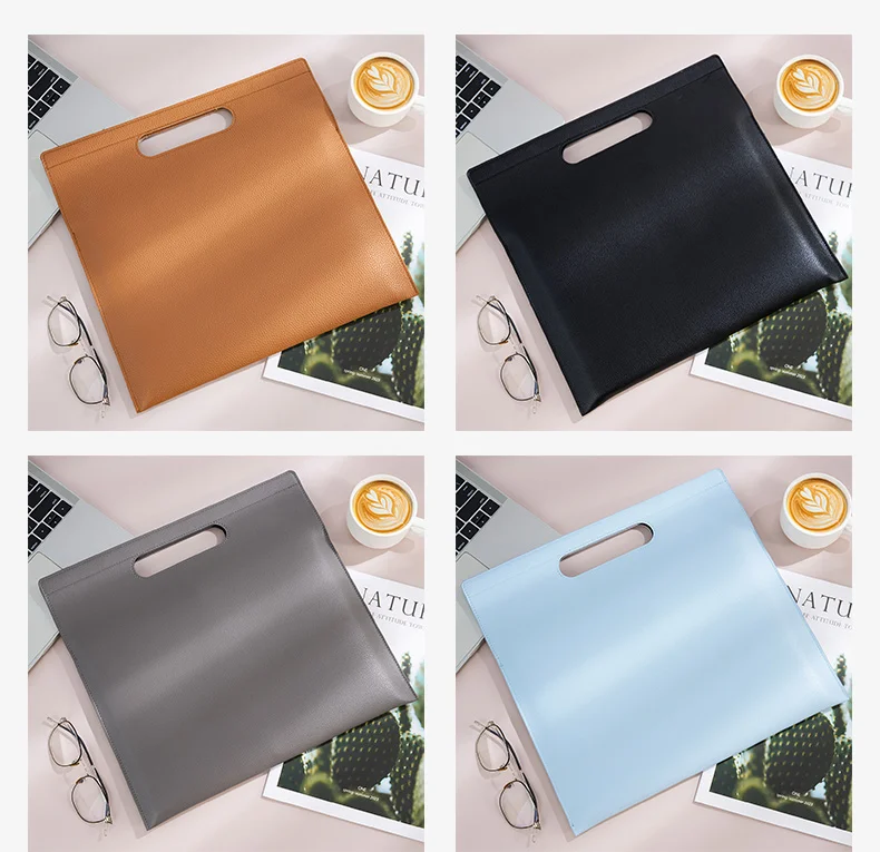 High Quality Document Receipt Contract Holder Document Bag A4 Soft PU Leather Office Meeting File Bag With Handle