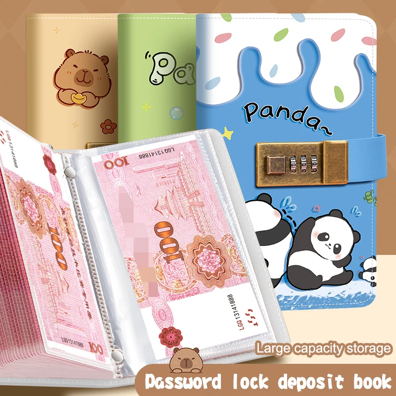 A6 Budget BindeMoney Saving Envelops Pandas Hardcover Notebook with Combination Lock