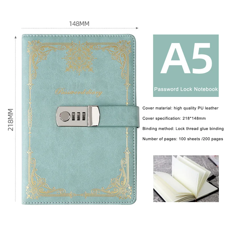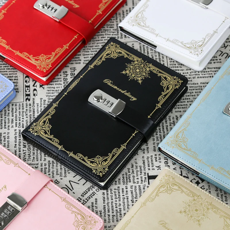 Hot Sale PU Leather A5 Digital Password Lock Notebook Foil Stamping Diary for College High School