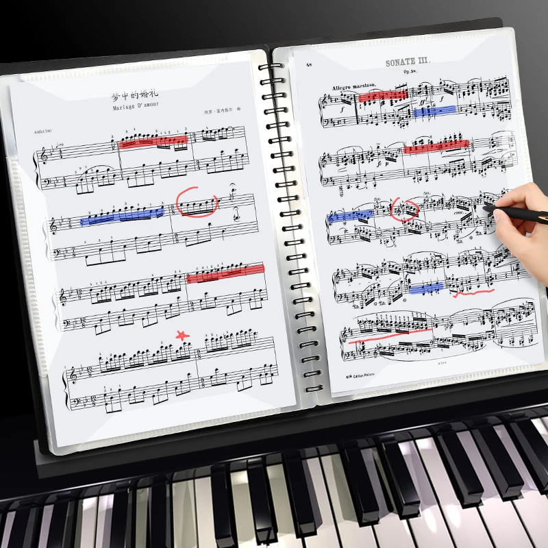 Music Score File Folder A4 Waterproof Piano Document Storage Loose Leaf File Plastic Portfolio Book