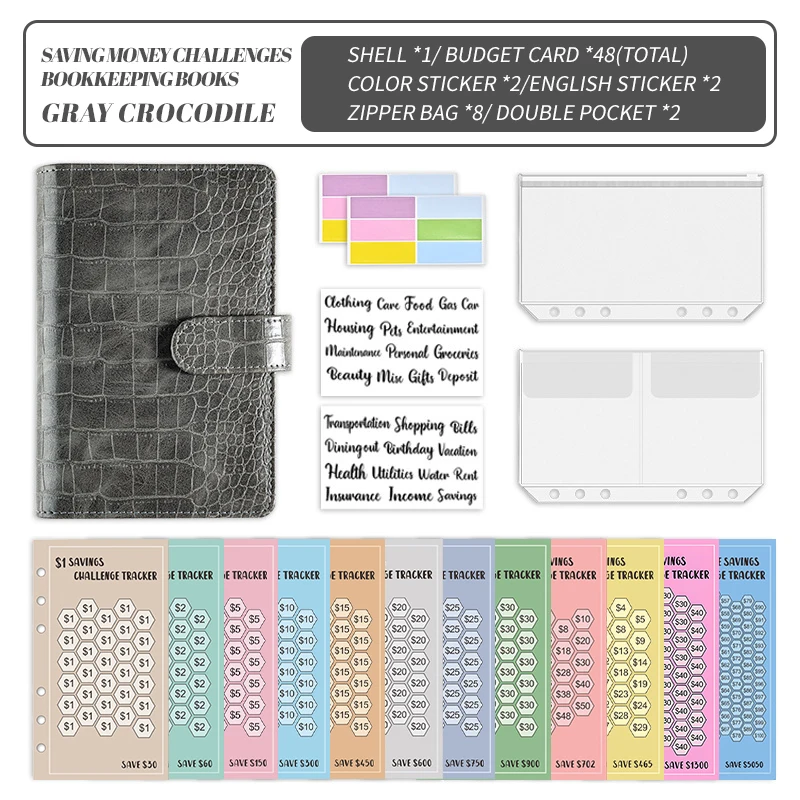Money Saving Envelops A6 Texture Notebook Loose-Leaf Budget Binder with Magnetic Buckle