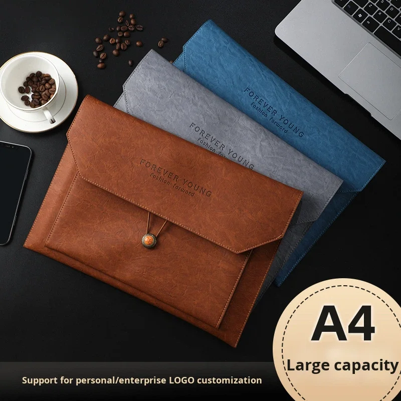 Customizable Logo A4 PU Leather Waterproof Large-Capacity Document Storage Bag Business Office File Bag for File Management