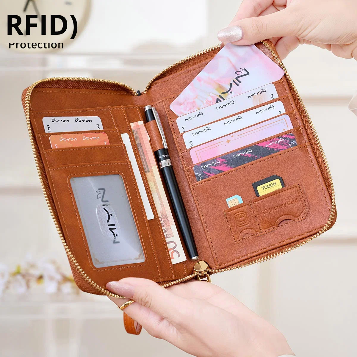 RFID Shielded Multi-Functional Portable PU Passport Wallet Airplane Pattern Ticket Card Holder Travel Zipper Passport Holder