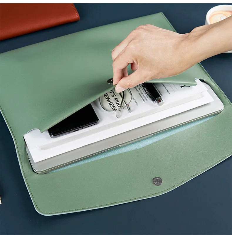Large Capacity A4 File Folder Storage Laptop Bag Customizable PU Leather Document Bag with Handle File Organizer