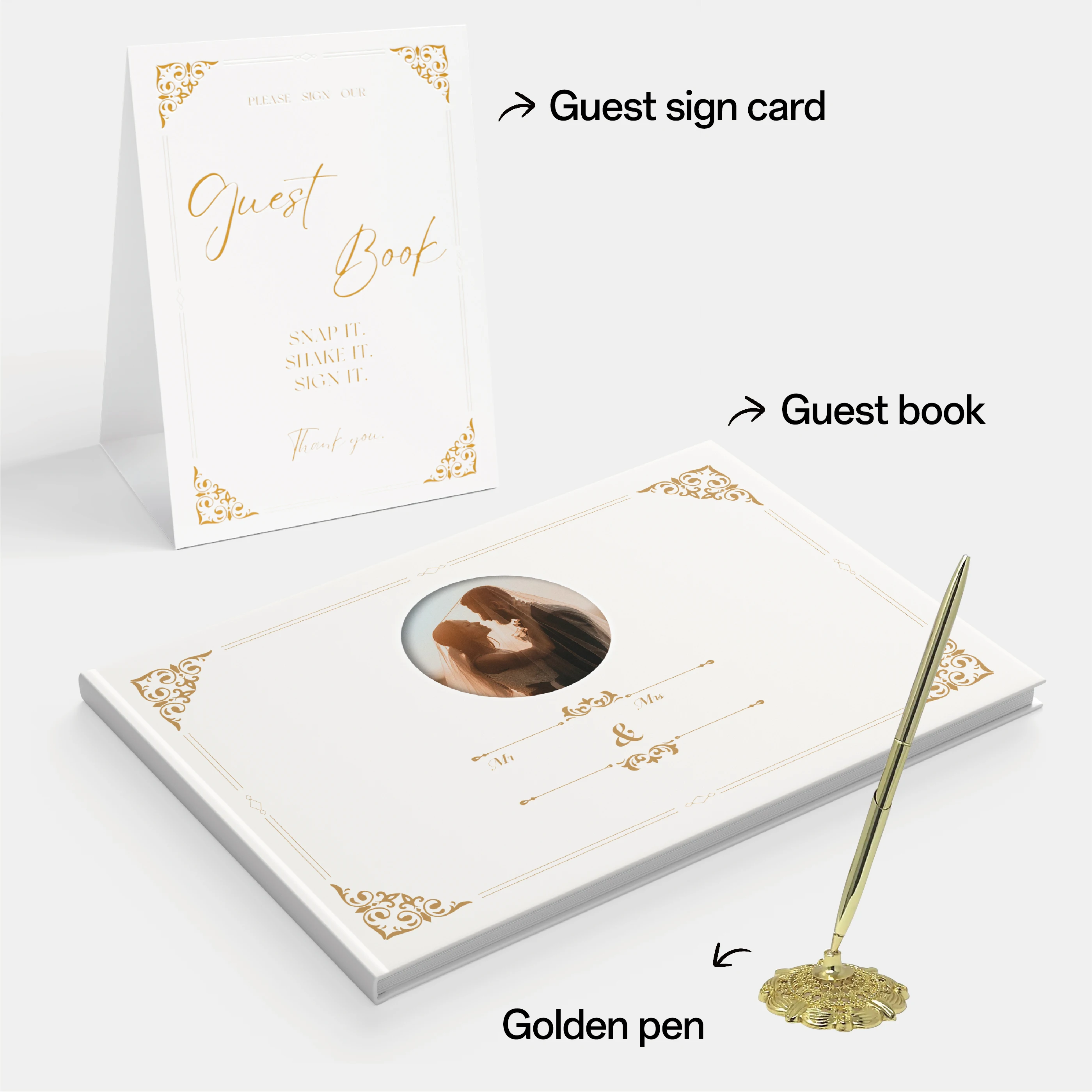 Guest Book for Wedding pink and Sign With Photo Hardcover Paper Foil With 250 Pieces High Quality in Wood