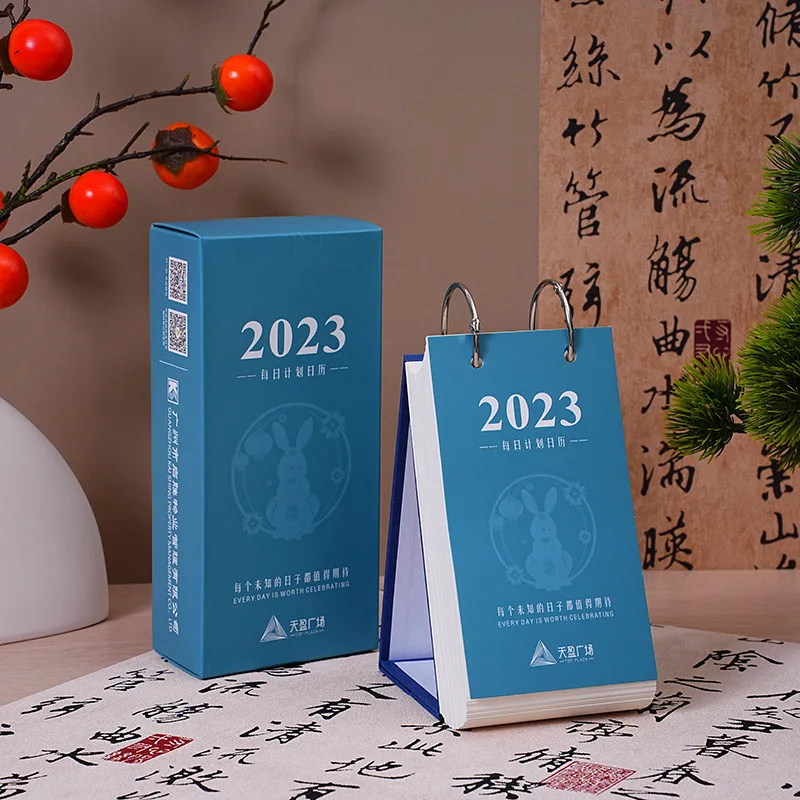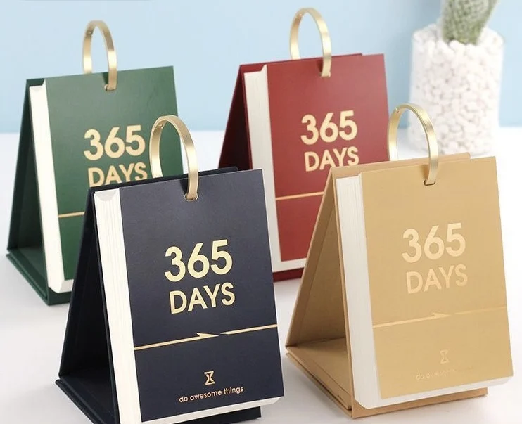 Newcomer Inspiring 366 Days Spiral Ring Daily Flip Dating Desk Calendar Personalized Paper Table Calendar With Clock Display