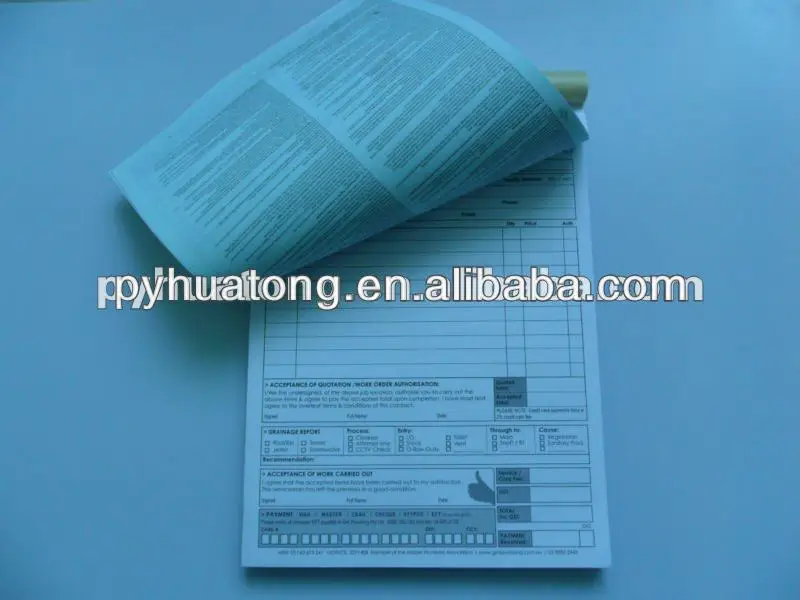 Custom Printed Logo A4 A5 Blue Triplicate Carbonless NCR Paper Receipt Book