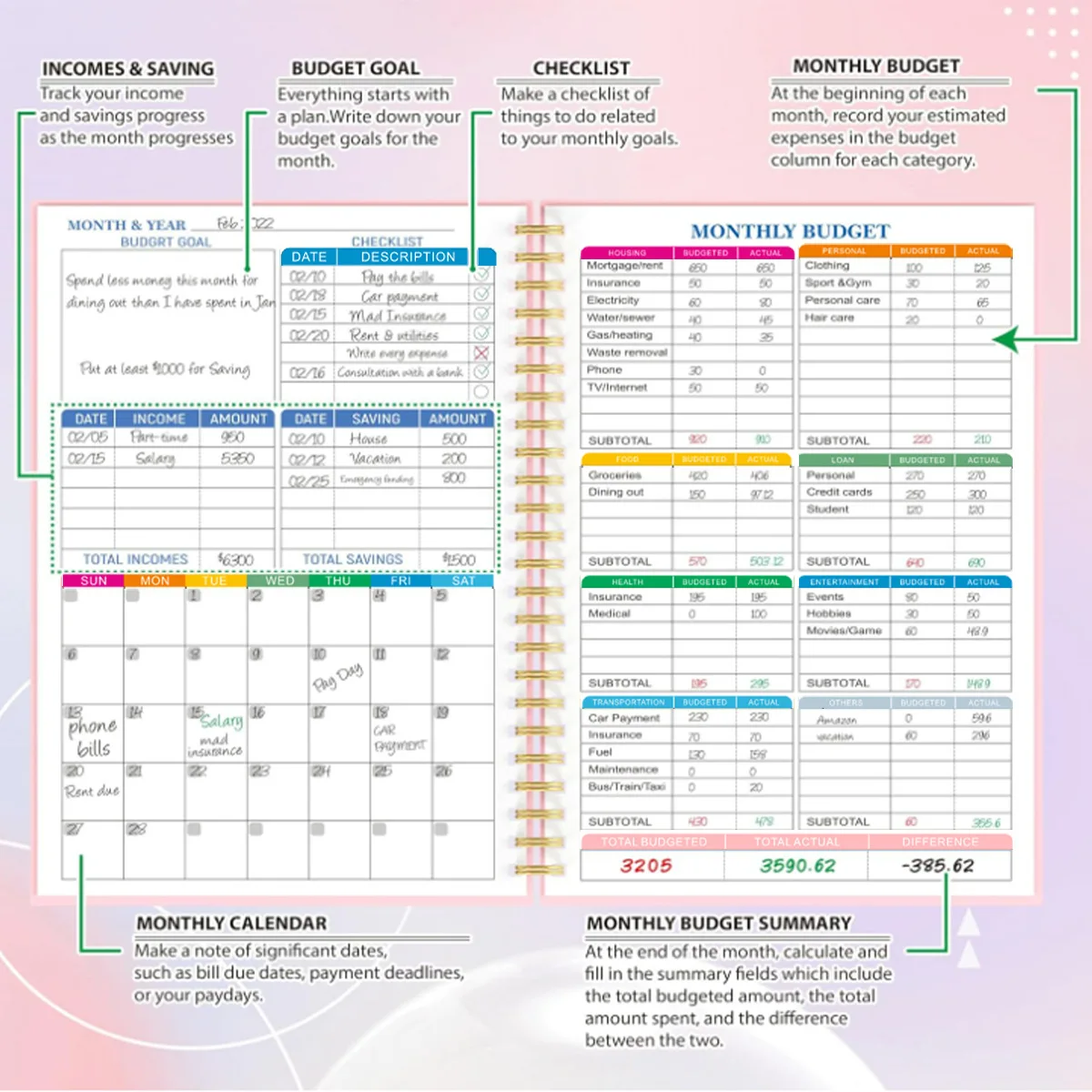 Custom Budget Planner Monthly Finance Organizer With PP Cover Spiral Style for Sublimation Wholesale for Gift