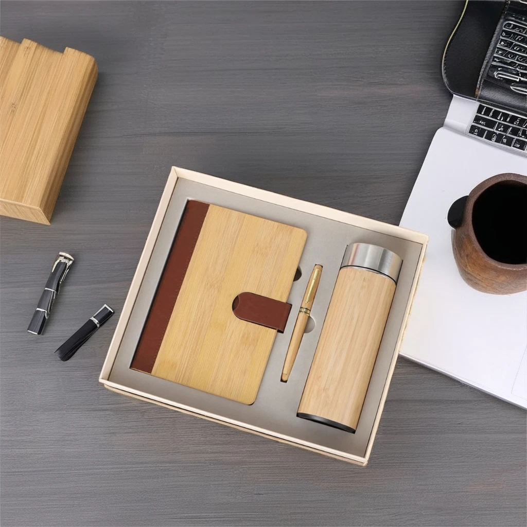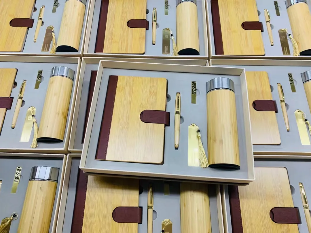 Custom Logo A5 Notebook Gifts Set Wood Bamboo Wooden Style Writing Diary Journal Notebook Cover Cooperation Gifts Set Box