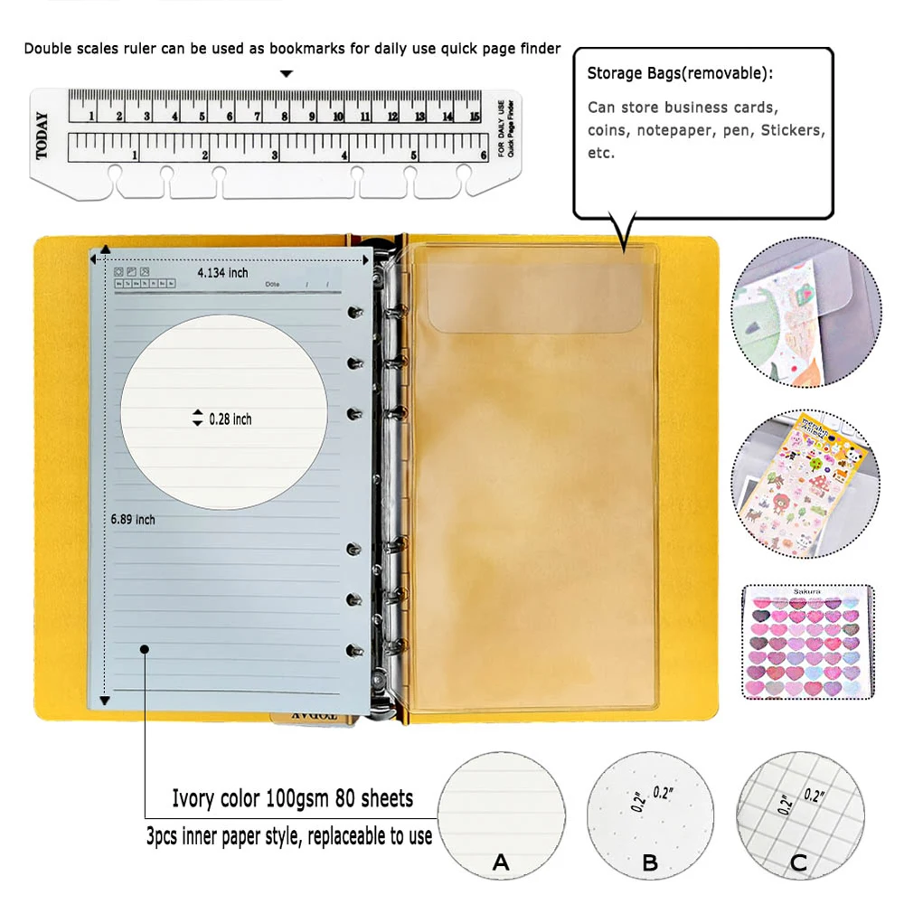 A4 A5 A6 A7 Metal File Folder with Refillable Loose Leaf Notebook Shell Office Use Notebooks