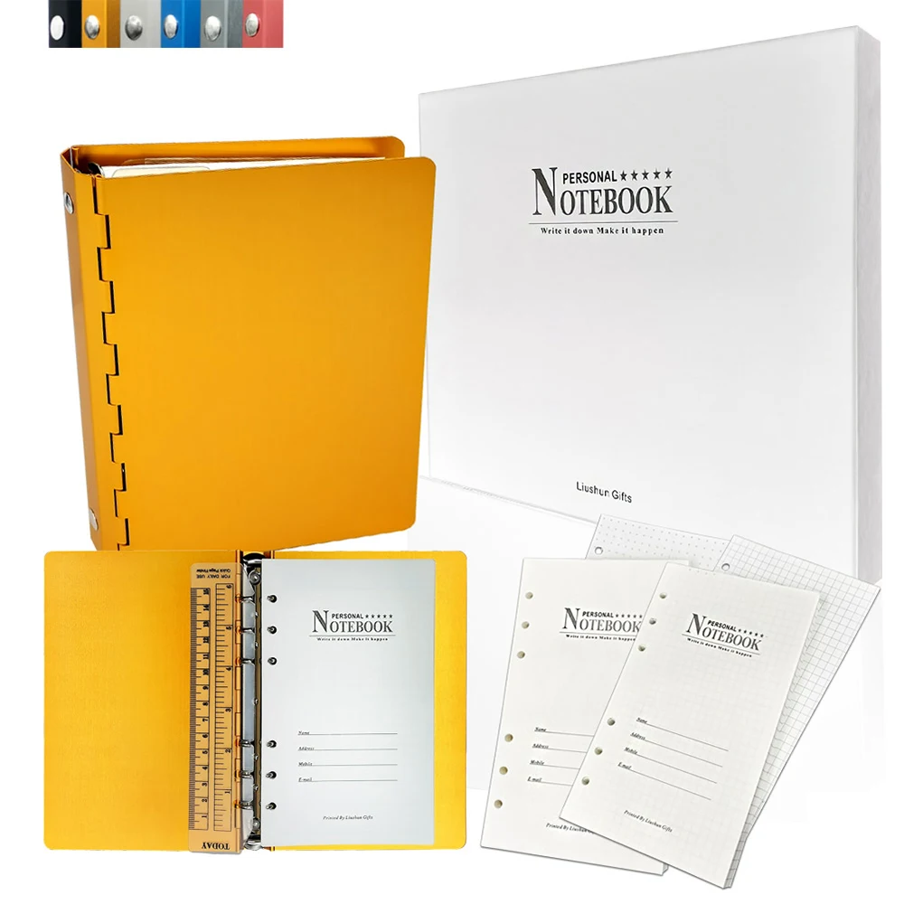 A4-A7 Metal File Folder with Refillable Loose-Leaf Notebook Shell for Business Meetings Office Supply