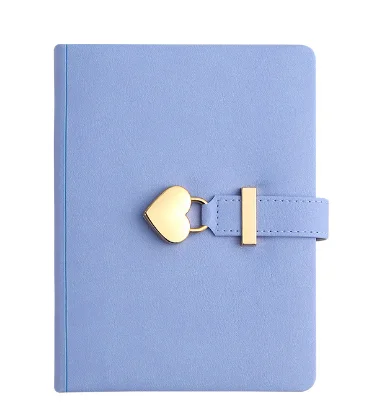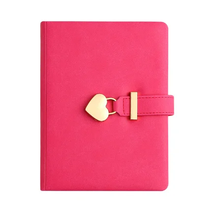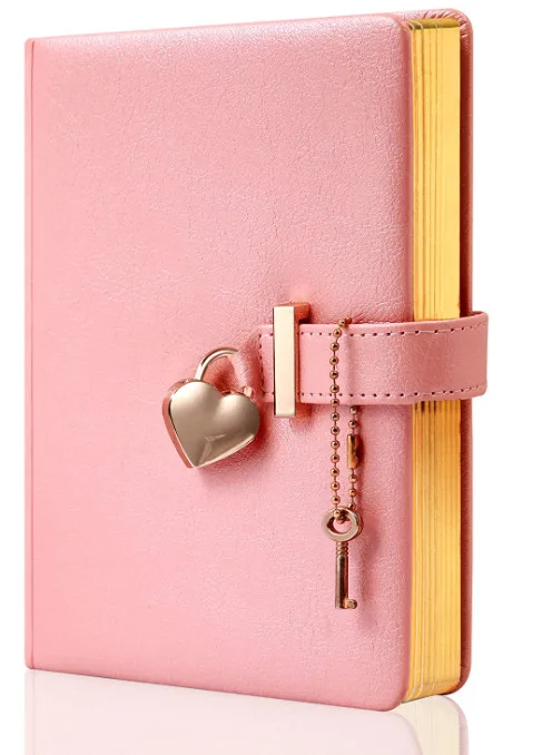 HUATONG Vintage Color Leather Journal Notebook Heart Shaped Lock B6 Cute Locked Secret Diaries Hardcover Sewing Gift for Girls