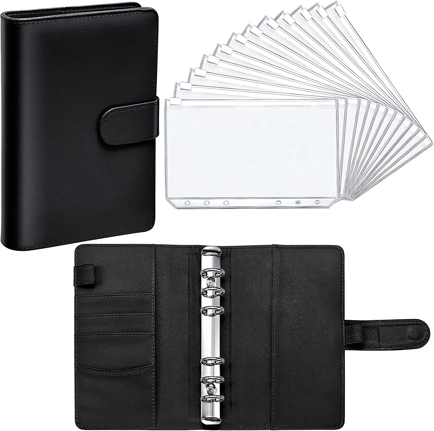 Small Size A5 A6 PU Leather Magnetic Loose Leaf Restaurant Bill Memo Folder Portfolio for Document Usage